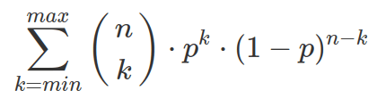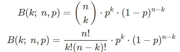 Each binomial probability describes the likelihood of getting k number of successes in the fixed n number of total trials. It does not care about the orders how these k successful events occur with the n-k number of failures. Binomial probability is simply calculated by multiplying the number of permutations (orders or combinations) of k number of successes in n events (Binomial Coefficient) with the probability of one such combination. The Probability Mass Function (PMF) of Binomial distribution is as following. The “mass” part indicates it computes probability for any given k. And the reason it is called “mass” other than “density” is because binomial is a discrete distribution.