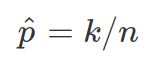 (as proportion of successes over all trials). This is also called the Maximum Likelihood Estimate (MLE) of the true parameter p. MLE is based on data at hand, and varies when sample size differs. However, when sample size n increases, the estimated p approximates real p. The likelihood function is shown below, the MLE estimates tries to find the p gives most likelihood for the data at hand (p will be between 0 and 1. However this way of estimation used data twice, once for estimate, once for evaluation.).