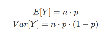 The mean (also called the expectation of data) and variance of a variable, Y, derived from Binomial distribution are:
