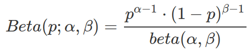 The Probability Density Function (PDF) for Beta distribution is as following. The world “density” indicates this PDF can compute probability for any given probability (of obtaining