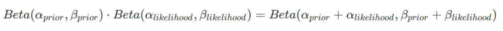 Beta distribution is one of the favourite distributions to use in Bayesian statistics. It is because two Beta distributions are very easy to combine. In the case where both prior distribution and likelihood function are depicted by Beta distributions, the resulted posterior distribution is also a Beta distribution with its