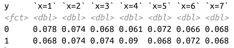 pivot_wider(id_cols=y,names_from=x,values_from=`y|x`) %>%