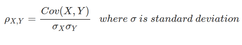 The correlation between the two random variables X and Y are defined as following. This also means that when covariance between two variables is zero, the correlation is zero.