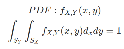 The PDF of above distribution has area under curve equals to 1. CDF calculates the probability of having X less than u and Y less than v.