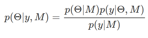 |M)). These together give rise to the posterior-distribution about these parameters conditioned on the observed data and underlying data model (p(