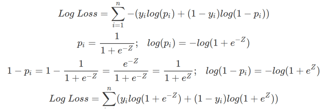 The above Log Loss function can also be written in terms of Z.